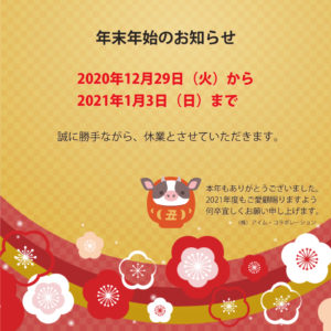 なお、誠に勝手ながら、年末年始は下記の日程で休業させていただきます。
